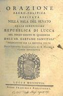 Orazione sacro-politica recitata nella sala del Senato della Serenissima repubblica di Lucca nel terzo sabato di quaresima