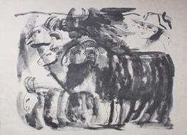 Litografia originale. Opera facente parte del portfolio di 12 litografie "I pastori", edito da Siro Teodorani nel 1973