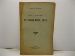 In 8, pp. 15 + (1b). Dedica dell'A. al p. ant. Br. ed. Estratto dall'Archivio Storico Italiano, serie V, tomo XLIII, disp. 1o dell'anno 1909. Ipotesi per la creazione di un corpus che riunisca tutto il patrimonio epigrafico medievale che possa in parte proseguire la gigantesca impresa dell'Accademia di Berlino.