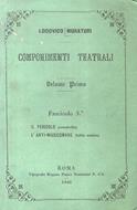 Roma, Tipografia Mugnoz, 1868, in-16, br. edit. verde con cornice tip. con angolari, pp. (7), da 208 a 304. Dedica a stampa all'attrice Antonietta Sivori De Matienza. Minime mancanze alla coperta. Vol. I - Fasc. 3° dei "Componimenti teatrali".