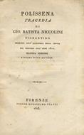 Polissena. Tragedia di Gio. Batista [sic] Niccolini fiorentino. Premiata dall'Accademia della Crusca nel concosrso dell'anno 1810. Seconda edizione, rivista dall'autore