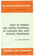 Titolo: POUR LE RESPECT DES DROITS NATIONAUX ET CULTURELS DES JUIFS D'UNION SOVIETIQUE. - Madaule Jacques. - Bibliothèque Juive Contemporaine, - 1969