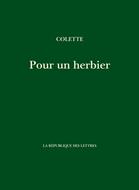 En 1947, l’éditeur suisse Mermod proposa à Colette de lui envoyer régulièrement un bouquet de fleurs à chaque fois différentes. Colette, en contrepartie, ferait le portrait de l’une ou l’autre de ces fleurs. Le résultat fut un petit recueil de 22 textes qui sont autant d’évocations de fleurs (le lys, la rose, l’anémone, le muguet, la jacinthe, le pavot, etc.) qui parut sous le titre de "Pour un herbier", dans la collection "Le Bouquet". Extrait: «À part le grand aconit, une scille, un lupin, une nigelle, la véronique petit-chêne, le lobélia, et le convolvulus qui triomphe de tous les bleus, le Créateur de toutes choses s’est montré un peu regardant quand il a distribué chez nous les fleurs bleues. On sait que je ne triche pas avec le bleu, mais je ne veux pas qu’il m’abuse. Le muscari n’est pas plus bleu que n’est bleue la prune de Monsieur... Le myosotis ? Il ne se gêne pas pour incliner, à mesure qu’il fleurit, vers le rose. L’iris ? Peuh... Son bleu ne se hausse guère qu’à un très joli mauve, et je ne parle pas de celui qu’on nomme «flamme», dont le violet liturgique et le profane parfum envahissent au printemps les montagnettes, autour de La Garde-Freinet. L’iris des jardins s’habitue docilement à tous les sols, se baigne les pieds dans les petits canaux de Bagatelle, se mêle à ses cousins les tigridias, embrasés et éphémères. Il a six pétales, trois langues nettes, étroites, et trois larges un peu chargées de jaune – le foie, sans doute – et il passe pour bleu, grâce à l’unanimité d’une foule de personnes qui n’entendent rien à la couleur bleue.» — Colette