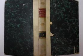 Copertina marmorizzata con banda e angoli, titolo dorato al dorso, sporca ingiallita e usurata al dorso. Tagli e pagine sporchi di polvere e bruniti.