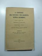 In 16, cm. 12,3 x 8,39, pp. 185 +(3), brossura editoriale con minima mancanza all'angolo inferiore del piatto anteriore. Pagine ingiallite dal fattore tempo. Firma di proprieta' al piatto e al frontespizio. Pubblicazione ufficiale del Sindacato Nazionale Fascista Ingegneri. Questa pubblicazione contiene la Legge 24 giugno 1924 ed il regolamento 23 ottobre 1925. Premessa del Segretario Generale del Sindacato ing. Arturo Galluppi. Esemplare molto buono.