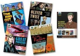 Project X Origins is a ground-breaking guided reading programme for the whole school. This exciting Graphic Texts pack includes action-packed stories, fascinating non-fiction, carefully selected poetry and comprehensive guided reading support to meet the needs of children at every stage of their reading development. Each book contains inside cover notes with advice on supporting older children with their reading, ideas for follow-up activities and higher-level comprehension questions. Project X Origins guided reading notes offer step-by-step teaching support for each book with guidance about comprehension, vocabulary, fluency, spelling, punctuation, grammar and writing. Each set of notes has in-built assessment and is fully correlated to all UK curricula. This pack contains 1 set of guided reading notes and 4 reading books, 1 each of: Time Runs Out, Oliver Twist, For the Fallen and other poems, Great Pioneers.