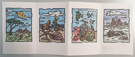 Le quattro incisioni realizzate su biglietto pighevole a fisarmonica, numerata 10/15, firmata e datata