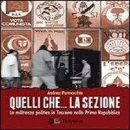 L' Ultimo, interessantissimo libro , intitolato "QUELLI CHE.LA SEZIONE", edito da Eclettica Edizioni, scritto da Andrea Pannocchia, (docente universitario, giornalista, e già autore di saggi sul Terrorismo, sulla Gladio e nel 2011 dell'istant book "Alla base del Fini versus Berlusconi"), ricostruisce molto chiaramente , il senso dalla militanza politica ai tempi della Prima Repubblica, e attraverso la "voce dei protagonisti", (quali ad esempio, Mario Paccagnini , Gianni Cantaloni , Giacomo Maccheroni, Andrea Agresti. ),mostra altresì al lettore come si viveva e che cosa significava essere militanti in quel periodo. Merito dello scrittore è cogliere il lato umano e realmente vissuto di chi, forse inconsciamente, contribuiva a forgiare quella storia, dando così vita ad una narrazione scritta che, attraverso i vivaci ricordi dei dieci protagonisti, assomiglia moltissimo ad un documentario parlato. Il volume, ambientato in Toscana ed articolato in undici capitoli - indaga dunque in maniera dettagliata e puntuale, il "nostro vissuto" ben lungi dall'essere nostalgico, riscoprendo e per certi versi anche "demonizzando", le tradizioni politiche del passato. Un'opera fondamentale sulla militanza politica in Toscana, ma che fornisce considerazioni valevoli per ogni parte d'Italia. Ho trovato questa monografia eccellente sia per l'esperto in materia, sia per chi, come nel mio caso vuole approfondire ed apprezzare un determinato periodo storico- politico. Gli eventi sono descritti con la massima accuratezza ed arricchiti da un gran numero di allegati. Lo consiglio vivamente