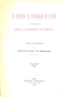 In-8°, pp. 15, brossura editoriale. Bell'esemplare. Estratto dalla "Civiltà Cattolica", quaderno 1173, 6 maggio 1899. Studio sulla questione se l'autorità civile possa legalmente obbligare i parroci ad ammettere nelle loro chiese le bandiere non benedette.