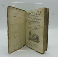 In 16 (cm 9 x 16), pp. 118. Cartonatura coeva con abrasioni e segni di consunzione alle cerniere, al dorso e ai piatti. Annotazioni manoscritte al contropiatto posteriore. Raccolta di poesie volgari e latine di Francesco Maria Zanotti, nato a Bologna nel 1692, insegnante di filosofia all'Universita' bolognese, dal 1723 fu Segretario dell'Istituto delle Scienze e delle Arti di cui poi divenne in seguito presidente.