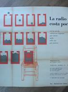 Manifesto cm 99,5 x 99,5, stampato a colori al recto. Velatura professionale al verso con riparazione di piccoli difetti in particolare in corrispondenza di antiche pieghe. Qualche segno di brunitura. Raro manifesto appartenente a una serie prodotta dalla Rai nel 1959 come promozione del mezzo radiofonico. La serie (in realta' semi sconosciuta) comprendeva circa 9 immagini utilizzate per i grandi manifesti ma anche per una brochure contenente cartoline. I manifesti, opera oltre che di Bruno Munari erano firmati dai migliori grafici dell'epoca: Steiner, Waibl, Provinciali, Benca, Huber, Bianconi, Tovaglia, Iliprandi. La serie venne utilizzata nel 1959 alla Fiera Internazionale di Milano, nell'ambito di un allestimento ad opera di A. & P.G. Castiglioni per la Rai. Cfr. Pubblicita' in Italia 1959 - 60, p. 198.