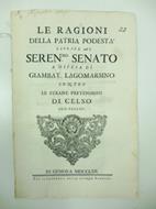 In 4, pp. 15 + (1b). Stemma xilogr. al front. Br. rifatta con carta d'epoca. Interessante memoria difensiva di Giambattista Lagomarsino citato in causa dal figlio Celso che lamentava mancanze del padre nei propri confronti in relazione al comportamento del genitore nei confronti degli altri due fratelli. Ma - come si spiega qui - il primo fratello 'abita fuori dalla casa paterna di uno scarsissimo alimento provveduto per tutta la sua famiglia...' mentre Celso e' provvisto di contanti e beni; l'altro fratello 'che col padre in una medesima casa abita non puo' certamente far invidia ad esso Celso' non gode di nessun favore particolare, anzi e' Celso ad essersi comportato male verso di lui e la moglie non appena entrata nella loro casa.