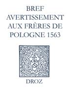 Recueil des opuscules 1566. Bref avertissement aux frères de Pologne (1563)