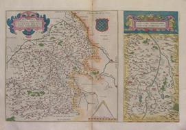 Carta geografica tratta dal Theatrum Orbis Terrarum, Nomenclator Ptolemaicus, incisa in rame, acquarellata, parte incisa di cm. 30 x 48 , su foglio di cm. 43 x 54. Cartigli in alto a sinistra ed a destra. Scale in basso a destra. Armi in alto al centro. Sul retro descrizione della carta.