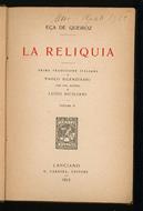 Libro vintage. Autore: De Queiroz Eca. Editore: Carabba. Luogo: Lanciano. Anno: 1913. Formato: in-8°. Pagg: 141. Legatura: cartonata flessibile. Conservazione: discreta. Lieve ingiallimento delle pagine. Nota al frontespizio. Ordinario segno del tempo.