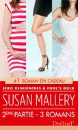 Les tomes 4 à 6 de la Saga de Susan Mallery, « Rencontres à Fool's Gold », en un seul e-book exclusif : rencontrez quatre nouvelles héroïnes toutes plus délurées les unes que les autres, et retrouvez la délicieuse communauté de Fool's Gold ! Exceptionnel : retrouvez également dans ce coffret un roman de la série Fool’s Gold spécial Noël en cadeau ! Tome 4 : Petit miracle et autres imprévus Un show télévisé pour attirer à Fool’s Gold de jeunes et beaux célibataires ? Pourquoi pas… Mais Dakota ne se sent pas concernée. Il faut dire qu’elle n’a pas du tout l’intention de trouver l’amour. Pourquoi aurait-elle besoin d’un homme quand Hannah, le bébé de six mois qu’elle a adopté et adore, va forcément suffire à son bonheur ? Mais les dieux qui veillent sur Fool’s Gold réservent des surprises… Tome 5 : Sur un petit nuage ! Montana ne sait plus où se mettre. Son chien vient de lui échapper et est allé semer la tempête dans l’hôpital de l’ombrageux Simon Bradley, chirurgien de renom qui s’occupe tout particulièrement des enfants. Et c’est justement une petite fille qui calme la colère du médecin : elle a vu le chiot et, pour la première fois depuis son accident, elle sourit. De quoi attendrir tout le monde et redonner enfin à Simon l’espoir de guérir la fillette. Entre Miss Montana Catastrophe et le Dr Ténébreux, un arrangement semble donc indispensable. Tome 6 : Mariages à Fool's Gold Tout le monde se marie à Fool’s Gold ! Tout le monde, à l’exception de Nevada Hendrix qui assiste, émue, aux préparatifs de mariage de ses sœurs. Côté sentimental, pour elle, c’est le calme plat ! Heureusement, son travail passionnant occupe tout son temps. Aussi est-elle ravie quand une occasion de booster sa carrière se présente, un job en or à deux pas de chez elle. En or, vraiment ?... Lors de l’entretien d’embauche – qu’elle envisageait comme une simple formalité –, Nevada a la surprise de découvrir que son futur boss n’est autre que Tucker Janack, son premier amour. Celui qui lui a appris le plaisir… et brisé le cœur… + le BONUS Spécial Noël : Le ballet des sentiments Evie ne parvient pas à y croire. A peine vient-elle d’être recrutée à l’école de danse de Fool’s Gold que la directrice démissionne, lui laissant la charge de monter le célèbre ballet annuel. Un ballet qui a lieu dans seulement… six semaines. Autant dire, le cauchemar ! Et puis, comment se concentrer sur une telle mission quand, depuis le premier jour où elle a posé le pied à Fool’s Gold, c’est Dante Jefferson, son voisin si craquant, qui occupe toutes ses pensées ?