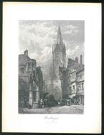 Incisione su acciaio, impronta 27 x 19 cm su foglio 31,5 x 23,5 cm. Tra le strade della città di Reutlingen, una città tedesca situata nel Land del Baden-Wurttemberg (Germania). Tratto da "Picturesque Europe" 1875-1879. Molto ben conservata.
