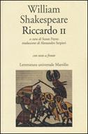 Volontà e destino, rito e potere si fondono assieme in quello che Coleridge definì il "dramma più schiettamente storico di tutto il teatro shakespeariano". La scena, alla fine del XIV secolo, è quella della drammatica deposizione di Riccardo II, osteggiato e sconfitto dal cugino usurpatore Enrico Bolingbroke, che ascenderà al trono con il nome di Enrico IV. Figura sacra e rituale dell'ordine simbolico medievale, di un mondo di istituzioni e cerimonie che sta collassando su se stesso per cedere il passo a una visione più moderna di regalità, Riccardo è però anche un uomo dalla profonda intuizione e dal pathos sofferto, un individuo che accoglie su di sé il declino tragico della perdita del nome e dell'identità, e che sceglie di arrendersi, prima ancora di aver lottato, alla propria disperata fragilità. Oscure trame, segreti inganni, vuoti cerimoniali e laceranti monologhi costituiscono lo sfondo e al contempo l'essenza di questo profondo dramma politico e psicologico, che sin dalle prime rappresentazioni ha dimostrato la sua imperitura capacità di significazione. Adattato e rivisitato con il passare dei secoli, declinato nei suoi molteplici interrogativi sul potere, il Riccardo II gode di enorme successo fin dal Settecento e nel Novecento vede tra i suoi registi i nomi di Giorgio Strehler, Gabriele Lavia, Anthony Quayle e Peter Hall. L'ultimo secolo assiste anche al fiorire delle traduzioni...