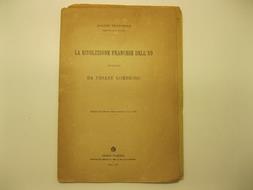 In 8, pp. 22. Intonso. Br. ed. Breve ma interessante opuscolo sulla Rivoluzione Francese che contiene i giudizi dell'illustre psichiatra torinese Cesare Lombroso, il quale aveva detto: 'Quella che si suole chiamare rivoluzione dell'89 non fu che una grande rivolta e un grande delitto politico, che servi' ad aumentare una trista serie di delitti comuni...'.