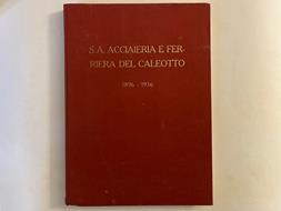 In 4 (cm 25,5 x 35,5), pp. 98 + (8) con 25 riproduzioni fotografiche in bianco/nero applicate su altrettante tavole. Legatura editoriale in piena tela rosso con titolo oro. Edizione di 250 esemplari numerati (ns. n. 49, il 4 parzialmente cancellato). Volume celebrativo con storia della Acciaieria e Ferriera del Caleotto di Lecco dal 1896 al 1936 con bell'apparato iconografico.