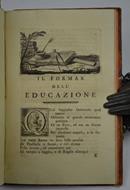 Cm. 18, pp. 110. Con bella antiporta allegorica, vignetta al frontespizio ed alcune finissime incisioni nel testo a mezza pagina. Legatura coeva in piena pelle bazzana, dorso liscio con fregi in oro. Esemplare appartenuto a G.B. Giovio e con dedica ms. dell'autore a quest'ultimo. Raro, due sole copie in Iccu.