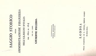 Saggio storico sulla amministrazione finanziera dell'ex Regno d'Italia dal 1802 al 1814 Terza edizione - Giuseppe Pecchio - copertina