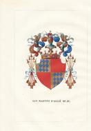 Lodi, Wilmant e figli, 1841-1848, una tavola in-4, recante uno stemma miniato a mano all'epoca, con particolari dorati. Tratta da Teatro araldico, ovvero Raccolta generale delle armi ed insegne gentilizie delle più illustri e nobili casate che esisterono un tempo e che tuttora fioriscono in tutta Italia di Leone Tettoni e F. Saladini, Lodi, Wilmant e figli, 1841-1848. Buone condizioni.