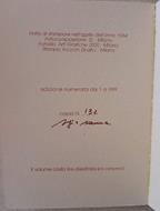 11X15, br. ed. pp. 30, tav. col. appl. alle pp., collaborazione di Crispina Pagano, suggerimenti leulicati di Renata Fabbri, Fotografie eseguite dallo Studio 1+1 di Roma, copia autografata dall'artista, n. 132 di 999.In buono stato, ordinari segni del tempo alla cop.Luogo di pubblicazione MilanoEditore Progetti editorialiAnno pubblicazione 1984Materia/Argomento Arte, PitturaAutografato siScaffale 45/5Autore Crispolti F.C.