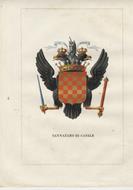 Lodi, Wilmant e figli, 1841-1848, in-4, privo di brossura, pp. [10]. Con un bello stemma accuratamente miniato a mano all'epoca, in vividi colori, con particolari dorati, su una tavola f.t. Fascicolo a fogli sciolti, dedicato alla storia della famiglia, tratto da Teatro araldico, ovvero Raccolta generale delle armi ed insegne gentilizie delle più illustri e nobili casate che esisterono un tempo e che tuttora fioriscono in tutta Italia di Leone Tettoni e F. Saladini, Lodi, Wilmant e figli, 1841-1848. mancanza al margine bianco superiore delle prime 3 carte di testo e della tavola.