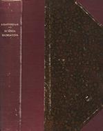 Volume rilegato artigianalmente con coperta mezza-tela con punte, piatti marmorizzati, impressioni in oro solo al dorso, cuffie consunte, ammaccate le punte, abrasioni alle estremità. Copiose muffe all'interno, pagine brunite ma pienamente fruibili, saldamente legate alla cerniera, molto scuri i tagli. N. pag. 223.