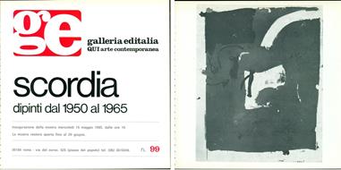 Cm 21x21. pp. 4. . Ottimo (Fine). . . .Antonio Scordia, nato a Santa Fè (Argentina) nel 1918, vive a Roma fin dall'infanzia. Ha iniziato a esporre nel 1945. Ha tenuto numerose esposizioni personali a Roma, Milano, Buenos Aires, Los Angeles, Vienna, Graz, etc. E' stato invitato alla Biennale di Venezia con sale personali nel 1956 e nel 1964 e con gruppi di opere nel 1952, 1954, 1958. Ha partecipato alle maggiori rassegne di arte internazionale quali la Biennale di San Paolo del Brasile, la Biennale di Tokio, l'Esposizione Internazionale di Nuova Delhi. A partire dal 1947 ha soggiornato a lungo in Argentina, Inghilterra, Francia. Nel 1977 è stata allestita una sua vasta mostra antologica a Roma, Palazzo Barberini, Ente Premi Roma. Nel 1979 altra mostra antologica al Padiglione d'arte contemporanea di Ferrara e alla Pinacoteca di Macerata.
