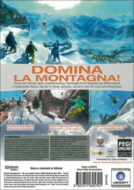 Sviluppato in collaborazione con la medaglia d’oro olimpica Shaun White, lo snowboarder di maggior successo nella storia di questo sport.Nel gioco Shaun è un amico e un maestro e ti potrà aiutare a migliorare le tue abilità.E se sarai alla sua altezza, potrai anche impersonarlo direttamente.