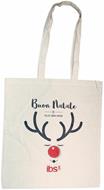 Allegra, colorata e divertente borsa-shopper a tema natalizio, in cotone naturale color écru con... la renna di Babbo Natale!