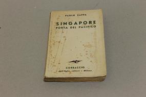 Singapore porta del pacifico.Milano, dall'Oglio editore, 1941. Copertina con segni di fioritura, pagine interne con fioriture, ultima pagina nastro adesivo tra pagina e copertina, firma a penna nella pagina del frontespizio, pagine da refilare sui tre lati