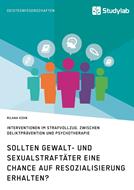 Die mediale Aufbereitung von Straftaten, insbesondere bei Sexualdelikten, führt oftmals nur zu einer verzerrten und stigmatisierenden Beurteilung in der Allgemeinheit. Die Forderungen nach lebenslanger Haft als Reaktion auf grausame Verbrechen werden demzufolge lauter. Doch ist eine Freiheitsberaubung auf Lebenszeit eine hinreichende Lösung? In diesem Buch beantwortet die Autorin die Frage, ob Gewalt- und Sexualstraftäter aus ethischer und finanzieller Sicht eine Chance auf Resozialisierung erhalten sollten. Aus dem Inhalt: - Risikofaktoren; - Erstdelinquenz; - Täter-Opfer-Beziehung; - Rückfälligkeit; - Kosten-Nutzen-Effizienz The following paper is meant to examine from an ethical as well as a financial point of view, whether violent and sex offenders should be given the chance of rehabilitation. The media coverage of crimes, especially in cases of sexual assault, often only leads to a distorted and stigmatizing evaluation in the general public. In response, the calls for life sentences are getting louder. But is a lifelong incarceration the most efficient solution? Answering this question first requires an objective view on the effectiveness of therapeutic interventions and their associated costs in prison. Due to the confirmed effectiveness and the result that the costs incurred by reducing the risk of recidivism through therapy are significantly lower than the costs incurred by the mere enforcement of sentences (penal system without therapy), hereinafter psychotherapy is presented in more detail. Thus, even offenders suffering from severe personality disorders can be treated successfully. Finally, punitive methods, such as the lifelong imprisonment, do not achieve the desired effect. After serving the sentence, violent and sex offenders should be given a perspective of life in freedom with the exception of such cases in with the risk of relapse is evaluated as above average by a qualified expert.