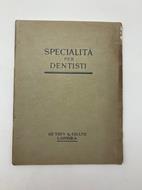 In 8 (cm 18,5 x 24,5), pp. 87 + (1) con illustrazioni nel testo. Brossura editoriale con mancanza risarcita al piatto posteriore e alone al margine esterno del piatto anteriore. Catalogo illustrato delle specialita' odontoiatriche De Trey & Co LTD, Comprende: denti Solila con punte ricoperte d'oro, denti anatomici posteriori Revelation, denti diatorici De Trey, corone De Trey, faccette anatoform Steele, porcellana sintetica De Trey, cuprit di De Trey, spatole in osso ed agata, strumenti Rival plastic, frese dentarie, articolatore Gysi, trapani elettrici; ecc...