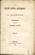 In-8°, pp. 93, (3), brossura editoriale azzurra con titolo inquadrato da bordura. Segni d'uso e tracce d'etichetta alla brossura, altra etichetta di privata biblioteca, lievi fioriture interne. Discreto esemplare. Unica edizione, rara. Indice: I. Il nuovo dogma della nazionalità. II. Imminenza del conflitto sociale e necessità di raccogliere tutte le forze della democrazia. III. Prima dinastia ungherese degli Arpad. I Pseudo Estensi, ossia origine adulterina dell'ex-Duca di Modena. IV. Documenti i quali provano come l'attuale famiglia dei principi di Crouy-Chanel si congiunga in serie non interrotta fino all'ultimo Arpad, che regnò in Ungheria, Andrea III. V. Dottrine e programma religioso e politico del principe di Crouy-Chanel. Lettera del principe di Crouy-Chanel all'imperatore Napoleone III.