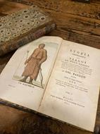 2 volumi in-8° antico (17x10 cm)), pp. XV 344 (2); 270 (2); legatura coeva in mezza pelle nocciolla liscia con angoli, titoli e tomaison su doppi tasselli verdi e rossi ai dorsi, piatti in bella carta decorata, tagli gialli spruzzati rosso. Complessive 7 tavole. f.t. incise in rame (6 in coloritura coeva) compresa, in fine del II vol., una grande veduta più volte ripiegata della costa settentrionale dello Spitzberg incisa da Pistrucci (quest'ultima in bianco e nero, con minimi fori di tarlo sul margine bianco). Restauro integrativo alla testa delle pp. 313-14 con riporto calligrafico delle piccole porzioni di testo mancanti. Interno fresco e marginoso. Più che buon esemplare. Prima traduzione italiana di importante opera di esplorazioni artiche in cerca del passaggio a Nord-Ovest. John Barrow (Dragley Beck, Lancashire, 1764-Londra, 1848) fu diplomatico e instancabile viaggiatore in Asia, in Africa e nelle regioni artiche e autore di numerosi volumi di viaggio, di cui il presente resta uno dei più rimarchevoli. Collana "Raccolta de' viaggi più interessanti eseguiti nelle varie parti del mondo, tanto per terra quanto per mare, dopo quelli del celebre Cook.". "The Hill Collection of Pacific Voyages", pp. 16-17.