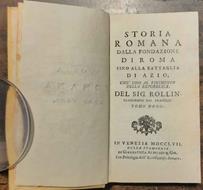 17 cm, bella rilegatura in piena pergamena, titolo in oro al dorso, tagli spruzzati; p. xxxi, 578. La storia di Roma dal 563 al 573 con la guerra contro i Galli, i baccanali scoperti e puniti e la censura di Catone e ancora la storia romana dal 573 fino al 585 e contiene la storia di Perseo re di Macedonia