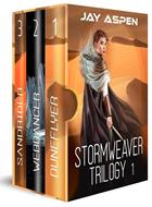 A mysterious stranger. A murderous ambush and a sinister plot in the deep desert. Alissa's attempt to save the life of the young and charismatic Talin throws her into a whirlwind of hidden agendas and a ruthless military attack. Only her mental and physical skills can keep her alive in this vast expanse of sand, heat, enormous lizards and poisonous scorpions. And a giant condor. Returning to the city, she confronts greater danger as she comes face to face with the invaders––and the terrifying Captain Reith who has haunted her dreams ever since she saw him on a grainy vid-recording in the desert. A compelling attraction she still does not understand. Maybe love will prove more powerful than war. But the heart of the enemy is a dangerous place… When Alissa and Reith escape from the devastated prison on Eden. they face a dangerous journey back to the capital with vital information. All they have to do is cross an unstable swamp inhabited by giant eels and carnivorous plants, get past the enemy slave camp on the coast, and somehow make it across the ocean to Pangaea without getting captured. The sinister threat already implanted deep in Reith's history could make the task impossible, but if they can learn each other's skills and work together, they might have a chance. Books 1, 2 & 3 of the Stormweaver series, the far-future fantasy epic by Jay Aspen.