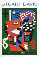 Cartoncino d'invito all'inaugurazione della mostra di Stuart Davis, Roma, Palazzo delle Esposizioni, mercoledì 22 ottobre 1997. Al fronte un'illustrazione a colori (Rapt at Rappaport's, 1952)