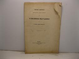 In 8, pp. 42. Estratto da 'Il Buonarroti' (serie II, vol. VIII, maggio-novembre-dicembre 1873). Br. ed. Studio critico delle opere di Vincenzo Navarro (Ribera, 1800 - Sambuca, 1867), medico e letterato. Fra le sue pubblicazioni, un carme sul monte Kronio, una tragedia intitolata 'Giacomo Perollo', il poemetto 'Nuovo vulcano sottomarino', 'Primi idilli di caccia', 'I sepolcri di Villa Giulia', 'Giovanni da Procida'. Pubblico' le sue opere a Palermo fra il 1844 e il 1859 comprendenti idilli di caccia, novelle lirico-romantiche, romanze, canti, anacreontiche, due poemi, quattro tragedie, due drammi tragici, tredici carmi ed alcune prose.