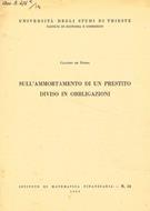 Sull'ammortamento di un prestito diviso in obbligazioni - Claudio De Ferra - copertina