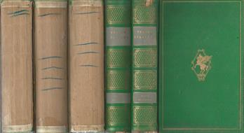 Opera completa in 5 volumi rilegati con fregio in oro al piatto anteriore e titoli i fregi in oro al dorso, piatti e dorso segnati da fattore tempo ed irregolari ai margini e alle punte, volumi 3-4-5 mancanti del dorso, pagine in buono stato, testi fruibi