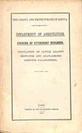 In 8 (cm 15 x 24,5), pp. 4. Brossura editoriale. Pubblicazione a cura della Divisione veterinaria del Dipartimento di Agricoltura della colonia britannica del Kenya sull'inoculazione del vaccino nel bestiame contro la "red water", un'infezione bovina.