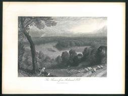 Incisione su acciaio, impronta 27x19 cm, su foglio 31,5 x 23,5 cm. Vista del Tamigi dalle colline di Richmond. In primo piano due figure si riposano all'ombra di un albero. Un pascolo di pecore bruca sulle colline. Tratto da "Picturesque Europe" 1875-1879. Esemplare ben conservato.