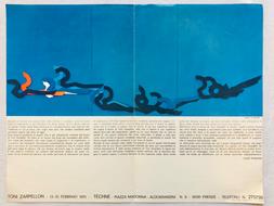 <p>Manifesto della mostra di Toni Zarpellon, T&egrave;chne, Firenze, 13-25 febbraio 1970. Al recto la riproduzione a colori dell'opera "Gente" e un testo di Aldo Passoni. Allegato un foglio sciolto con una dichiarazione di poetica dell'artista estratto dal catalogo "Giovani artisti alla rassegna S. Fedele 1969 Milano"</p> Cm 25x33. . . Ottimo (Fine). . . . <p><em>Toni Zarpellon insegna dal 1964 al 1987 all'Istituto d'Arte di Nove e all'Istituto d'Arte dei Carmini di Venezia. Dal 1965 espone le sue opere in numerose mostre personali e collettive in Italia e all'estero presso strutture private ed enti pubblici. All'intensa attivit&agrave; pittorica ha sempre accompagnato l'esecuzione di oggetti plastici con vari materiali, nonch&eacute; sculture e pitture rupestri. Il suo lavoro &egrave; documentato presso svariati enti privati e pubblici, e fondazioni varie come ad esempio: l'Archivio Storico A.S.A.C.&nbsp;della&nbsp;Biennale di Venezia; la Fondazione Ragghianti di Lucca; la Fondazione Corrente di Milano e altre Istituzioni Culturali in Italia e all'estero.</em></p>
