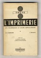 Paris, Dunod, 1954, in-8, br., pp. VII, 343. Con 82 ill. in b.n. (Un intero capitolo dedicato alla fabbricazione del “libro”; inoltre: stampa di giornali, manifesti, etichette, sacchetti di carta, cartoline, immagini religiose, carte geografiche, partiture musicali, ecc.; impressione su stoffa, metallo, ceramica, vetro, materie plastiche; grandi tappe nella storia della tipografia...).