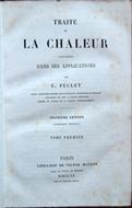 Tre volumi in-8° (23,6 x 14,8 cm), pp. (6), 476; (4), 500; (4), 484, legatura coeva in mezza tela, con titoli al dorso. Normali tracce d'uso e del tempo alla legatura. Con una tavola fuori testo, a doppia pagina, al terzo volume e, secondo quanto riportato nel frontespizio del terzo volume, 674 figure nel testo, in bianco e nero. Al primo volume, piccola mancanza, lontano dal testo, reintegrata con carta giapponese, nei fogli con le pagine dalla 165 alla 168 e 217-218, 243-244. Nel margine superiore di pagina 275, due operazioni matematiche scritte a inchiostro da mano coeva, prima della rilegatura del volume. A ciascun volume, timbro a secco di vecchio proprietario all'altezza dell'angolo superiore del foglio con al recto l'occhietto. Piccoli, leggeri segni d'umido ad alcune pagine. Per il resto, ben conservato. Table des matières. Premier volume. Livre premier. De la combustion et des combustibles. Chapitre I. De la combustion en général. Chapitre II. Des combustibles en général. Chapitre III. Des bois. Chapitre IV. Charbon de bois. Chapitre V. Tannée. Chapitre VI. Tourbe. Chapitre VII. Charbon de tourbe. Chapitre VIII. Combustibles fossiles. Chapitre IX. Du coke. Chapitre X. Détermination des volumes d'air nécessaires pour bruler les différents combustibles et des volumes de gaz qui s'échappent. Chapitre XI. Températures produites par la combustion des différents combustibles. Livre II. Écoulement des gaz comprimés. Chapitre I. Écoulement des gaz, sous des faibles pressions, par un orifice en mince paroi. Chapitre II. Écoulement des gaz, sous de grandes pressions, par un orifice en mince paroi. Chapitre III. Examen de la formule de M. Navier. Chapitre IV. Écoulement par des ajutages cylindriques et coniques. Chapitre V. Frottement dans les tuyaux de conduite de gaz. Chapitre VI. Changements de direction dans les tuyaux de conduite de gaz. Chapitre VII. Changements de section dans les tuyaux de conduite du gaz. Chapitre VIII. Écoulement des gaz par des tuyaux d'une forme quelconque. Chapitre IX. Écoulement de la vapeur sous différentes pressions. Chapitre X. Anémomètres et manomètres. Livre III. Des cheminées. Chapitre I. Mouvement de l'air chaud dans les tuyaux verticaux. Chapitre II. Considérations générales sur les cheminées d'usine. Chapitre III. Dimensions des cheminées d'usine. Chapitre IV. Cheminées d'appel. Chapitre V. Construction des cheminées. Chapitre VI. Influence de l'état de l'atmosphère sur le tirage des cheminées. Chapitre VII. Appareils destinés a soustraire le tirage des cheminées a l'influence des vents et de la pluie. Chapitre VIII. Appareils destinés a mesurer le tirage. Livre IV. Mouvements de l'air produits par des machines ou par des jets de vapeur. Chapitre I. Considérations générales sur les appareils ventilateurs. Chapitre II. Ventilateurs a force centrifuge. Chapitre III. Ventilateurs a vis. Chapitre IV. Roues pneumatiques. Chapitre V. Machines a piston. Chapitre VI. Machines a cloches plongeantes. Chapitre VII. Ventilation par jets de vapeur. Chapitre VIII. Machines soufflantes diverses. Chapitre IX. Ventilation par un travail accumulé. Livre V. Des foyers. Chapitre I. Des foyers ordinaires a flamme droite. Chapitre II. Différentes formes de foyers. Chapitre III. Nouvelles dispositions de foyers. Chapitre IV. Considérations générales sur les foyers. Chapitre V. Foyers pour les divers combustibles. Livre VI. Émission et transmission de la chaleur. Chapitre I. Émission de la chaleur par des surfaces maintenues a une température constante. Chapitre II. Transmission de la chaleur a travers les corps solides. Chapitre III. Considérations générales et applications des formules. Note. Tables et renseignements relatifs aux propriétés physiques des corps. Deuxième volume. Livre VII. Vaporisation. Chapitre I. Des générateurs de vapeur en général. Chapitre II. Indicateurs de niveau. Chapitre III. Manomètres et thermomètres. Chapitre IV. Soupapes de sureté et plaques fusibles. Chapitre V. Alimentation des chaudières a vapeur. Chapitre VI. Appareils pour séparer de la vapeur l'eau qùelle entraine. Chapitre VII. Fourneaux. Chapitre VIII. Incrustations des chaudières et influence de certaines eaux d'alimentation. Chapitre IX. Conduite des chaudières a vapeur. Chapitre X. Dispositions diverses des générateurs a vapeur. Chapitre XI. Générateurs chauffés par la chaleur des gaz qui s'echappent de certains fourneaux. Chapitre XII. Explosions des chaudières a vapeur. Chapitre XIII. Améliorations a introduire dans les générateurs. Chapitre XIV. Phénomènes qui se produisent dans la transmission de la chaleur de la surface intérieure de la chaudière a l'eau. Livre VIII. Distillation. Chapitre I. Distillation simple. Chapitre II. Appareils de distillation a effets multiples. Chapitre III. Appareils de distillation et d'analyse de vapeurs. Livre IX. Évaporation. Chapitre I. Évaporation spontanée a l'air libre. Chapitre II. Évaporation a la température ordinaire par un courant d'air forcé. Chapitre III. Évaporation en bases ouverts par l'action directe d'un foyer. Chapitre IV. Évaporation d'un liquide chaud par un courant d'air forcé. Chapitre V. Évaporation directe par l'air brulé. Chapitre VI. Évaporation par la vapeur. Chapitre VII. Évaporation dans le vide. Chapitre VIII. Appareils d'évaporation dans lesquels la chaleur est employée plusieurs fois. Livre X. Séchage. Chapitre I. Extraction de l'eau par une action mécanique. Chapitre II. Séchage a l'air libre. Chapitre III. Séchage par un courant d'air forcé. Chapitre IV. Séchage par la chaleur. Chapitre V. Régulateurs de température. Chapitre VI. Dispositions des séchoirs a air chaud. Chapitre VII. Séchage du linge. Chapitre VIII. Dessiccation du bois et de la tourbe. Chapitre IX. Dessiccation des légumes. Chapitre X. Torréfaction du tabac a fumer. Chapitre XI. Séchage des étoffes par rayonnement. Chapitre XII. Séchage de