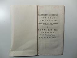 In 16, pp. 113-125 con 1 tav. rip. f.t. inc. all'acq. e 1 tavv. sinott. n.t. Br. rifatta con carta d'epoca. Estratto dagli Opuscoli scientifici e filologici di Calogera' (tomo XXIII).